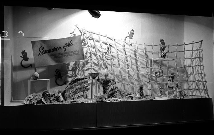 Konsum, skyltfönster, fajanser från Gustavsbergs studio.
