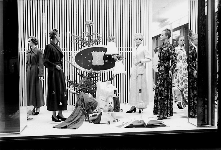 Jörnstedt, skyltfönster med damkläder. Julskyltning.