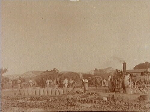 Jordbruksarbetare, tröskning med Thermaenius tröskverk.