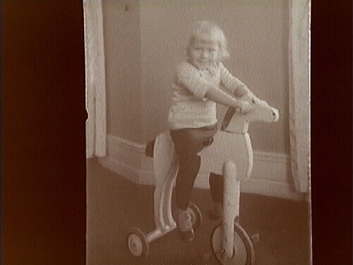 En liten pojke på leksakshäst.