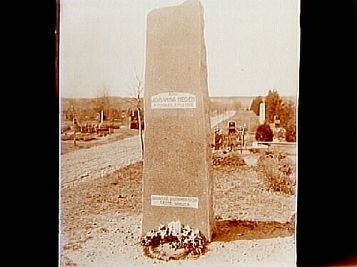Gravsten med följande text: Fru Johanna Heden 21/7 1837-10/12 1912. Svenska barnmorskor reste vården.
