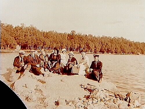Grupp av festkommittén på utflykt med skolbarn till Fåran och Vinön.