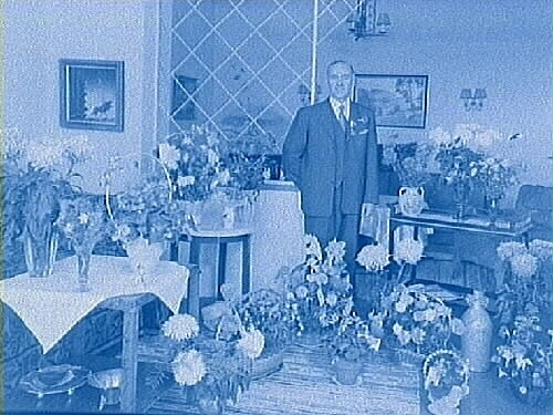 Rumsinteriör, en man , biträde hos Håkanssons Manufakturafärr.