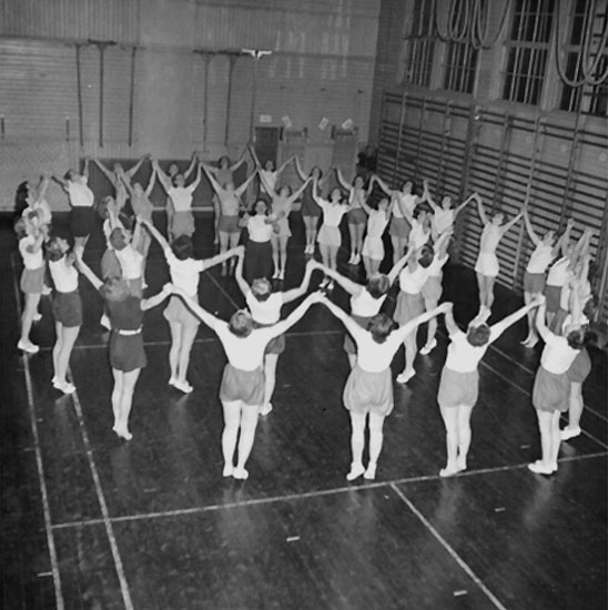 Kvällsgymnastik i Vasaskolans gymnastiksal.