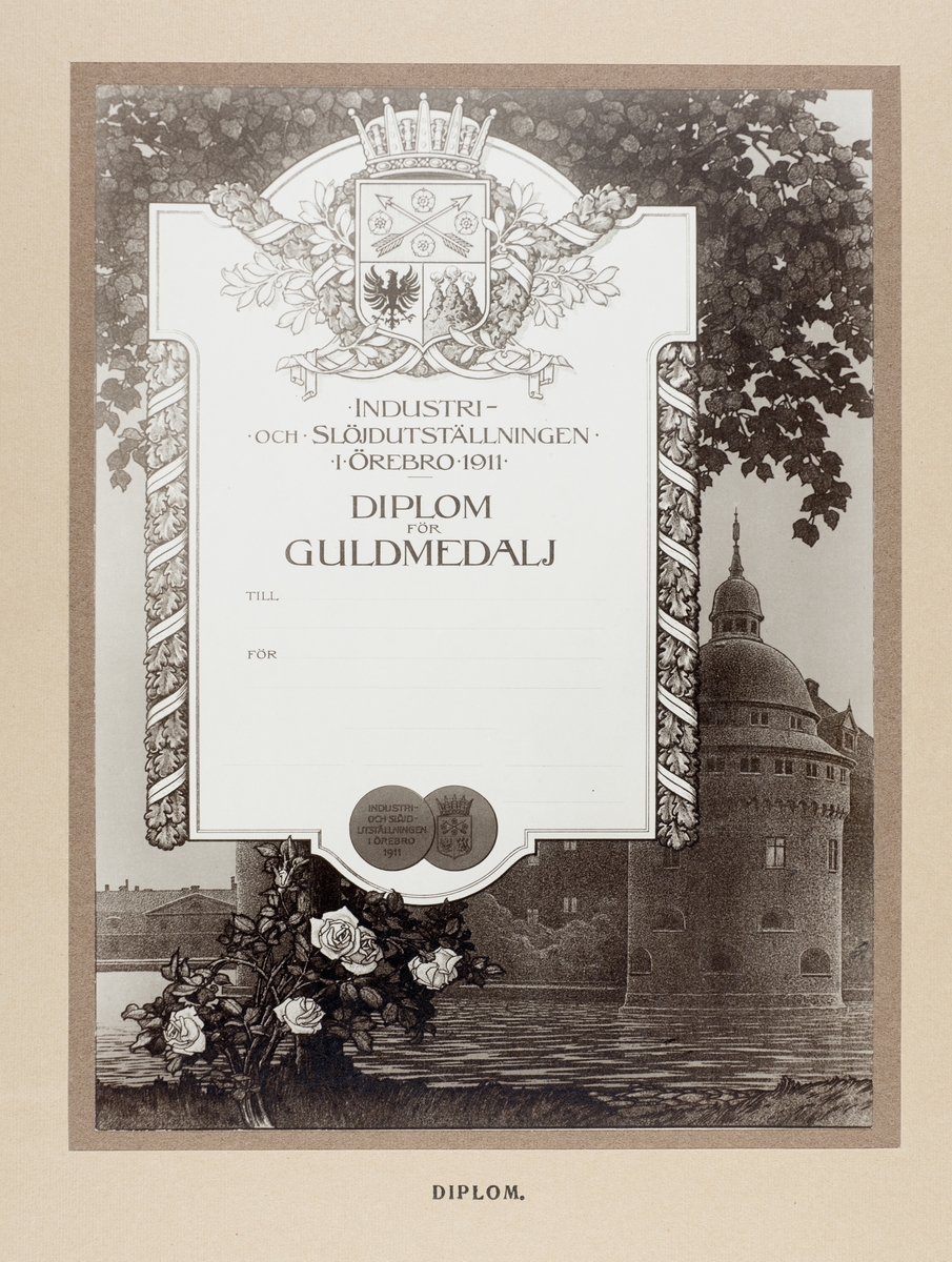 Titel: Industri- och slöjdutställning 21 juni - 16 juli 1911 i Örebro. Utsällningen hölls vid Karolinska läroverket och Livregementets husarers ridhus vid Olaigatan. Bilderna är samlade i en bok med riktika fotokopior. Ordförande för programkommittén var landshövding Theodor Nordström. Fabrikör Anton Hahn fungerade som närmaste man och vice ordförande. Med i styrelsen satt även stadsarkitekten Magnus Dahlander.