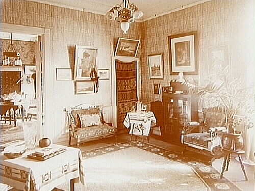 Titel: Rumsinteriör i jugendstil. Stadsarkitekt Magnus Dahlander. Huset ägdes av Dahlander. Tax tomt 10000, hus 34000. Tomt 553 m/2.
