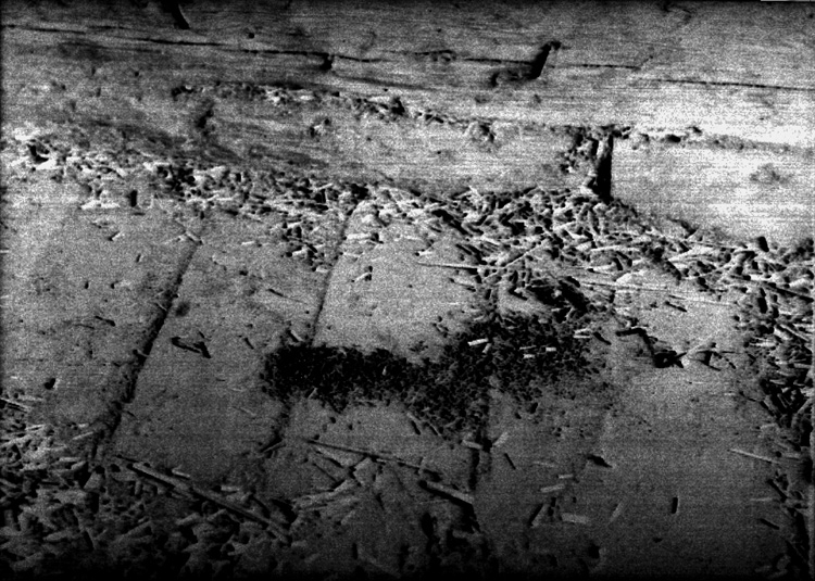 Maskar som kryper som en kedja på loggolvet vid Åkerby, Gräve socken.