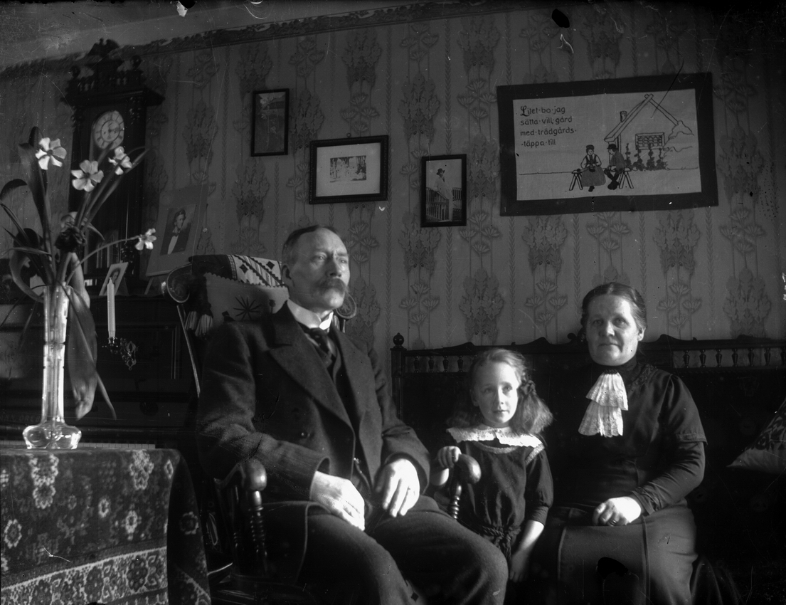 Anders Johan Pettersson (givarens farfar), med dottern Kerstin Pettersson och hustru Eva Sofia Pettersson.