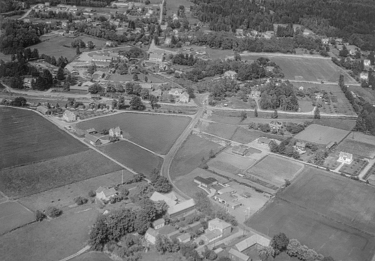 Titel: Flygfoto över Vintrosa. Bilden tagen för vykort.