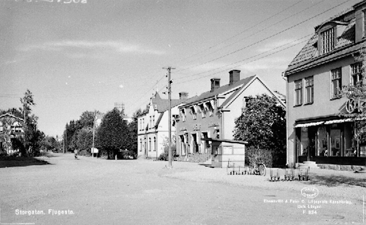 Storgatan, Fjugesta, bostadshus med affärslokaler på bottenvåningen.