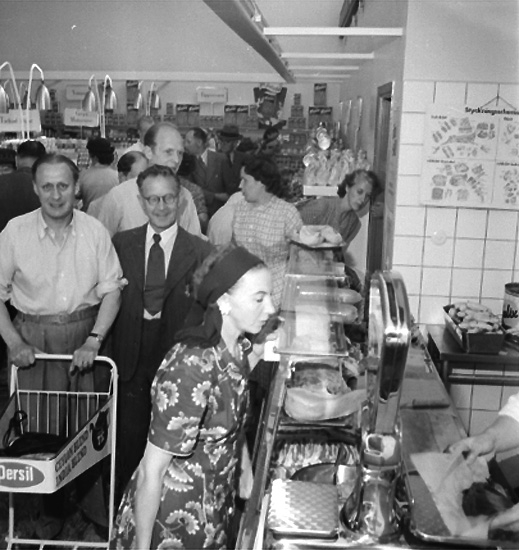 Titel: Konsum Rosta, affärsinteriör, kunder och personal.