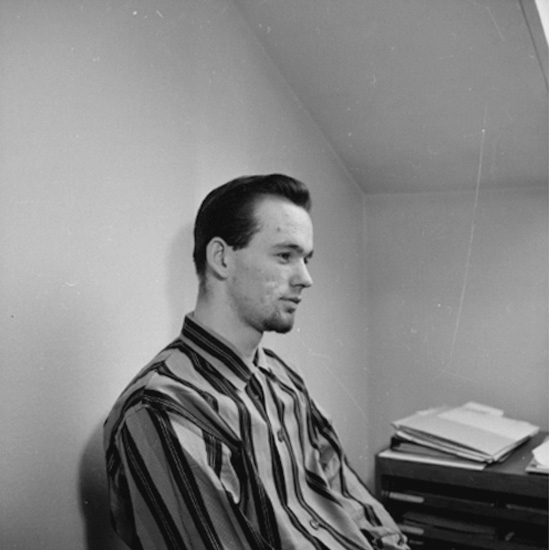Titel: Interiör, en man i pyjamas. Sedell Reklam.