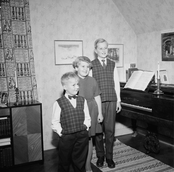 Rumsinteriör, tre barn.