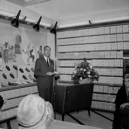 Oscarias nya affär, skoaffärsinteriör, modevisning.