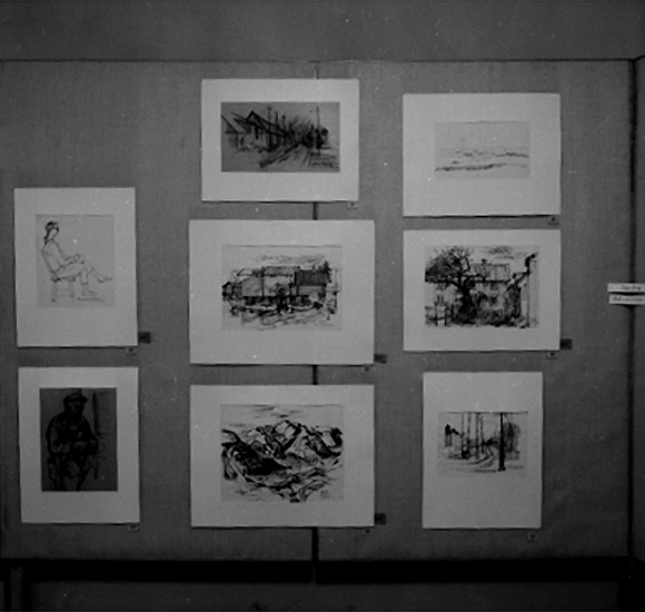 Inga Bergs utställning på Konserthuset, interiör av utställningssalen, tavlor.