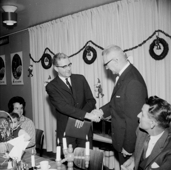 Avskedsfest för L.C. chefen Torsten Östergren, interiör, grupp.