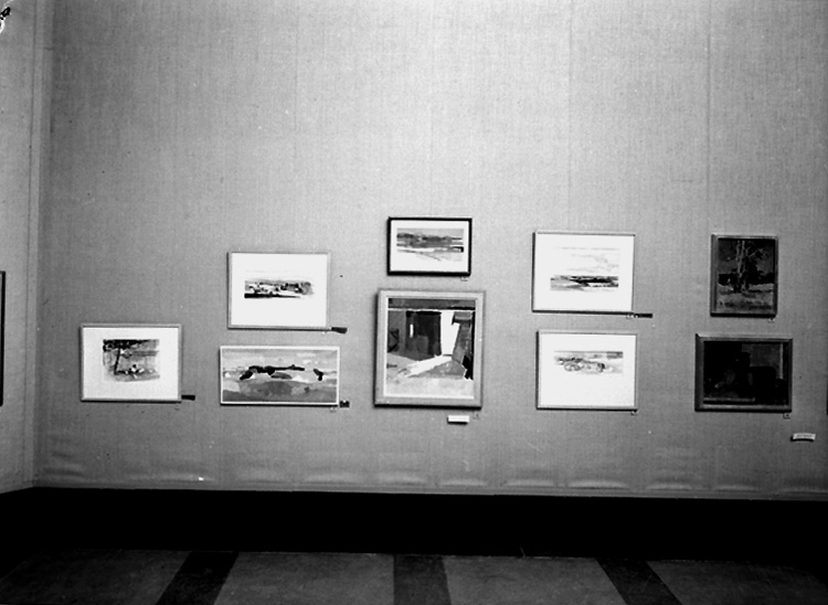 Inga Bergs utställning på Konserthuset, interiör av utställningssalen, tavlor.