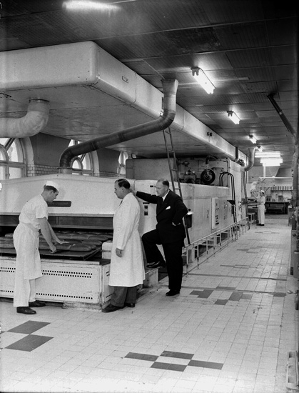 Konsum bageriet, interiör, fyra personer.
