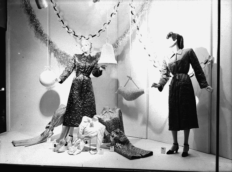 Konsum, skyltfönster, damkläder. Julskyltning.
