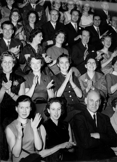 Oscarias 50 årsjubileum på Idrottshuset, interiör, gruppbild.