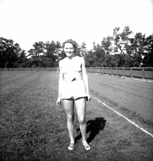 Idrottstävling för damer på Örnsro idrottsplats, en kvinna.