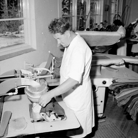 Titel: Bergeå Kemiska, kemtvätt, interiör, en man.