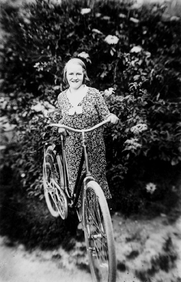 En flicka med cykel.