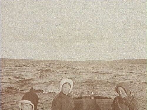 Tre personer i en båt ute på sjön.