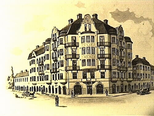 Grosshandlare A. Herbert Israelssons första större fastighet Drottninggatan 42 i Örebro, det så kallade 'Näbbhuset'. Drottninggatan 46 ägdes också senare av A. Herbert Israelsson. Margit Hagenfeldt-Engdahls familj bodde i Drottningg. 42 något år omkring 1917, innan Choisie byggdes.