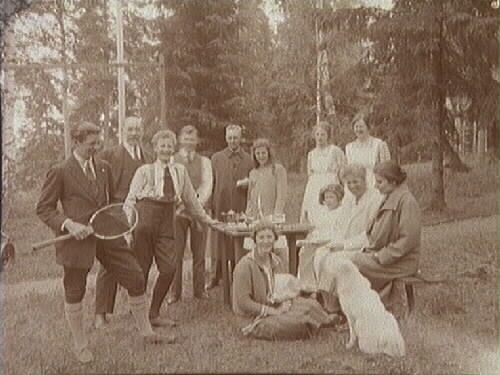 Alfred och Gerda Thermaenius (född Callmander) med barnen Sven, Carl-Edvard, Ulla, Maj, Barbro. Längst till höger Ingrid Sanne (född Callmander), syster till Gerda.