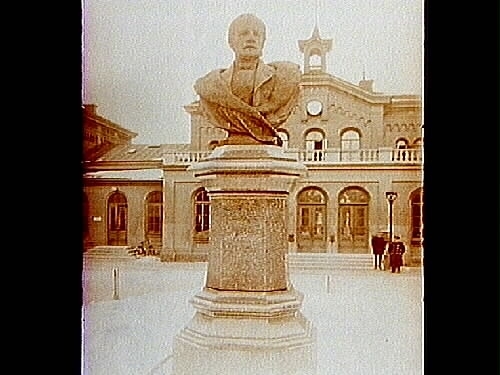 Titel: Centralstationen. A.E. von Rosens staty i parken framför centralstationen.