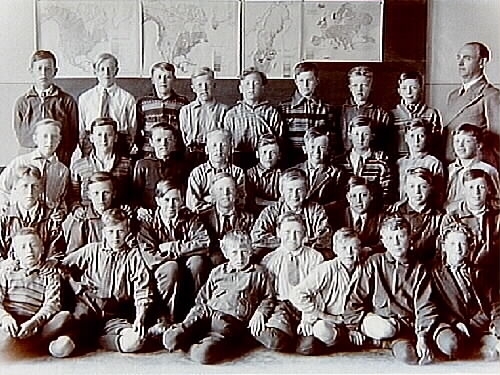 Olaus Petriskolan, klassrumsinteriör, 32 skolpojkar med lärare G. Mollbeck, sal 29.