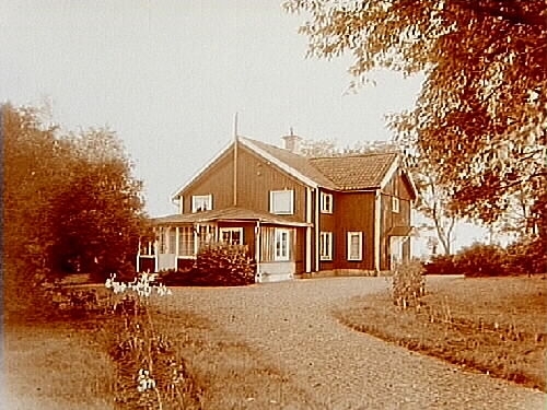 Tvåvånings vinkelbyggt bostadshus och glasad veranda, komministergården.