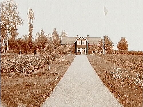 En och en halvvånings bostadshus med frontespis.