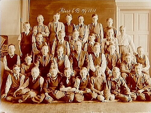 Vasaskolan, klassrumsinteriör, 29 pojkar med lärare A. Nihlmar, klass 6b, sal 11.