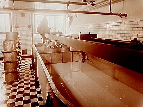 Fellingsbro Mejeri, interiör av osttillverkning.