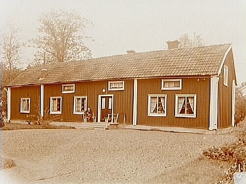 Backa gård, en och en halvvånings bostadshus, en man framför huset.