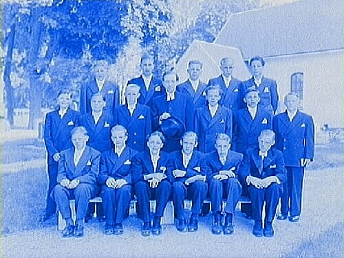 17 konfirmander, 17 pojkar med pastor Hedberg.