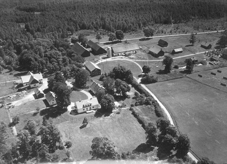 Titel: Flygfoto över Falkenå Säteri, Kräcklinge. Bilden tagen för vykort.