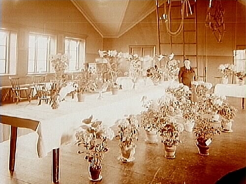 Rumsinteriör, en kvinna på 60 årsdagen.