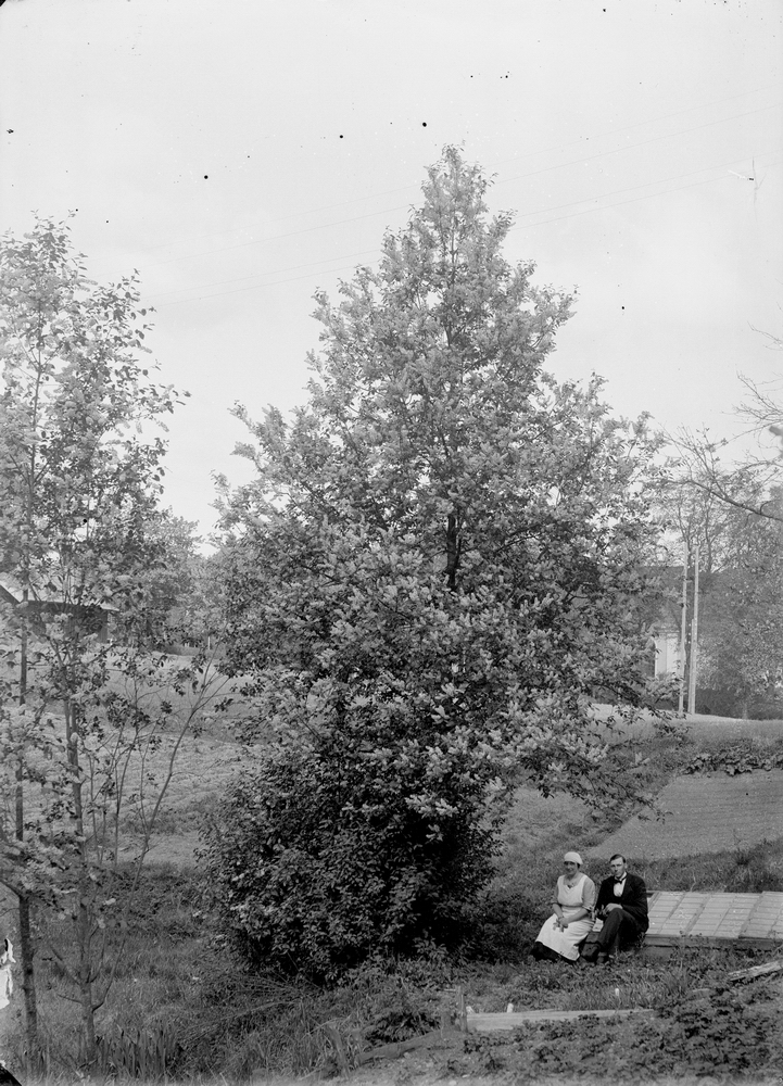 Ett par i trädgården.