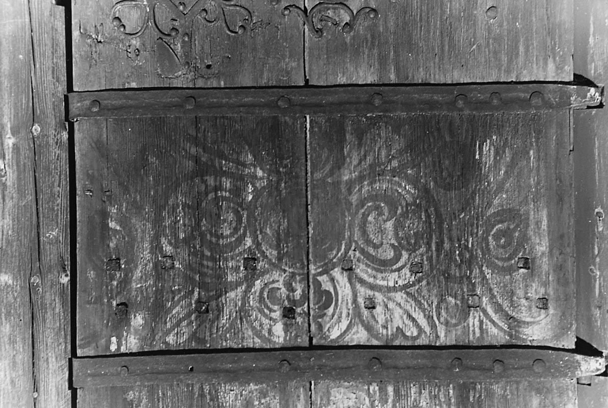 Dörrmålning på vapenhuset vid Älgarås kyrka.