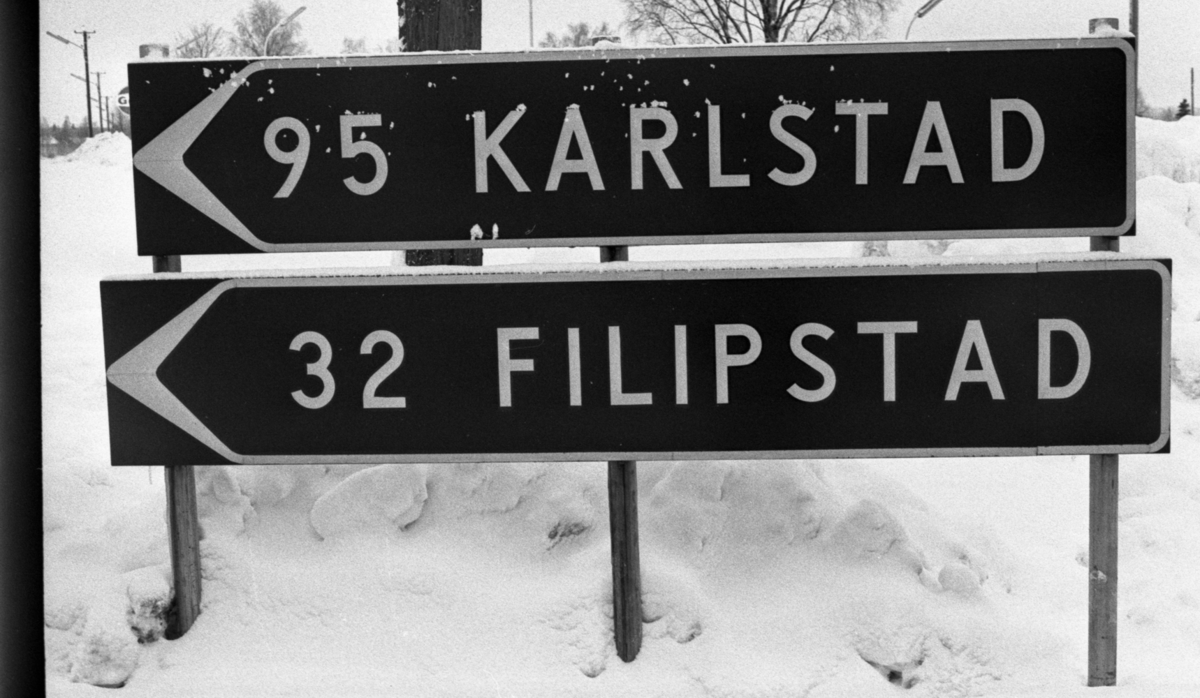 Trafikskyltar som anger riktning och avstånd till Karlstad och Filipstad