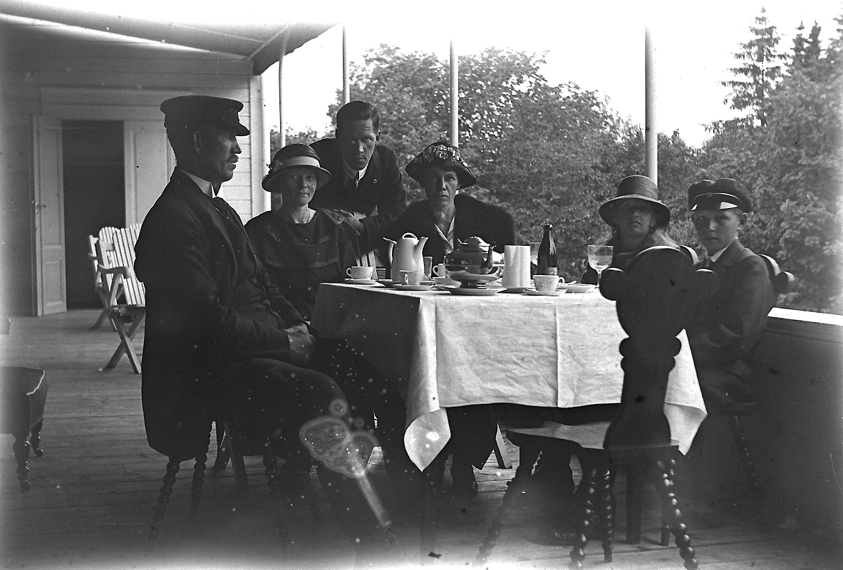 Porla, grupp sex personer vid bordet.