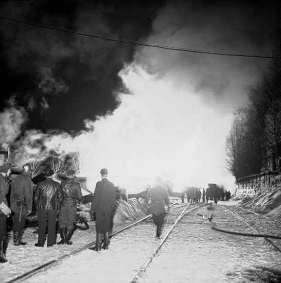 Brandsläckning, branden i pappersmagasinet i Ställdalen (februari 1956).
