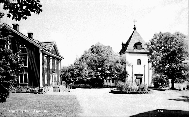 Aspabruk, Birgittakyrkan och stuga, exteriör.
