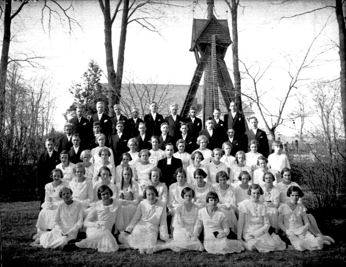 55 konfirmander, 35 flickor, 22 pojkar och pastor Broberg.