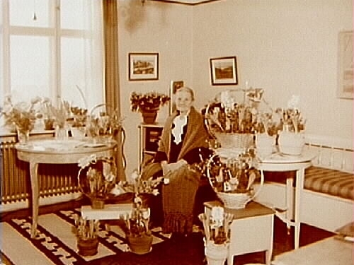 Rumsinteriör, en äldre kvinna.