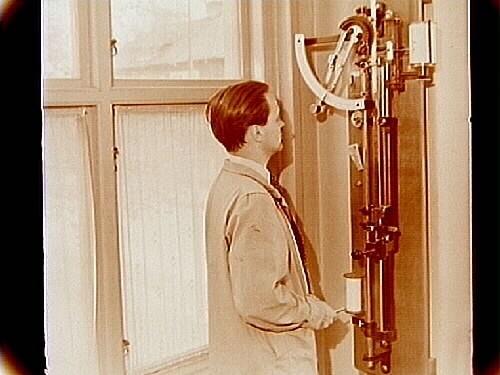 Lindmark & Nilssons metrevsfabrik, interiör, en man.