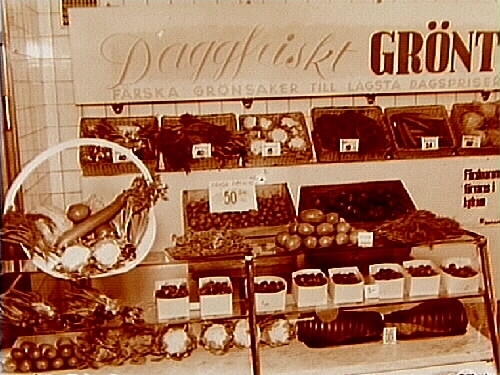 Konsum, affärsinteriör, grönsaker.